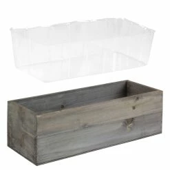 - Product: Indoor Wood Rectangular Wooden Planter Box with Plastic Liner