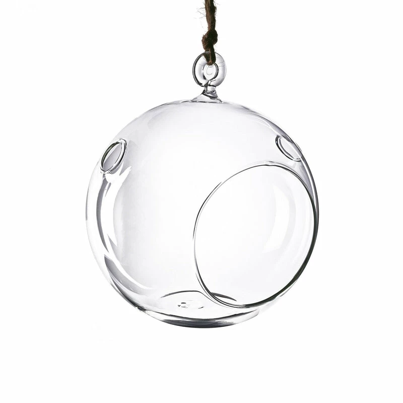 Hanging orb planters include a side hole for easy access, a hook to hang them, & a flat bottom to place on surfaces. The Glass Terrarium Orbs is most commonly used as a mini Hanging terrarium for plants, moss, & succulents. However many people use it as a hanging candle holder for decoration.