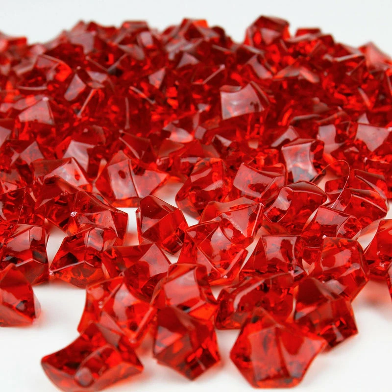 Acrylic Ice Rock Cubes 25 lbs, Vase Filler Red, Table Scatters. Approx. 4500 pcs