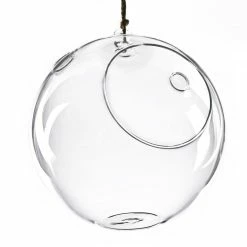 These Orb-shaped hanging terrariums are fantastic for crafting holiday ornaments or hanging garden scenes. These terrariums can sit on tabletops as centerpieces or hang in hallways or gardens. They are also commonly used as tea light candle holders. They are equipped with chimney openings. This terrarium is available in 6 different sizes.