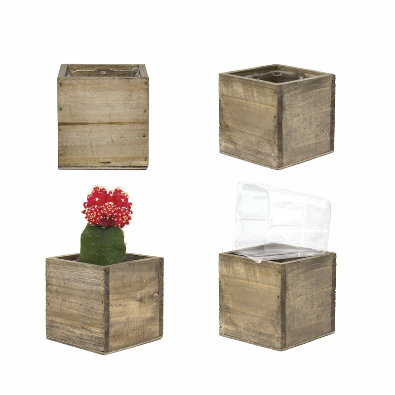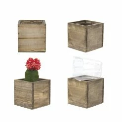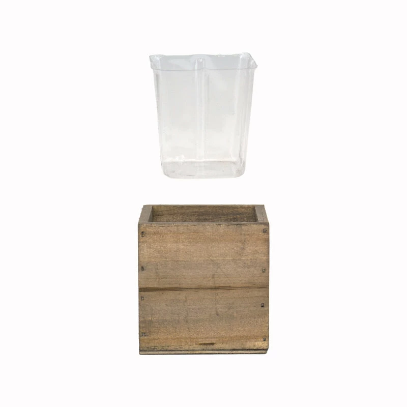 Wood Cube Vase Box and Planters. Removable Plastic Liner included.