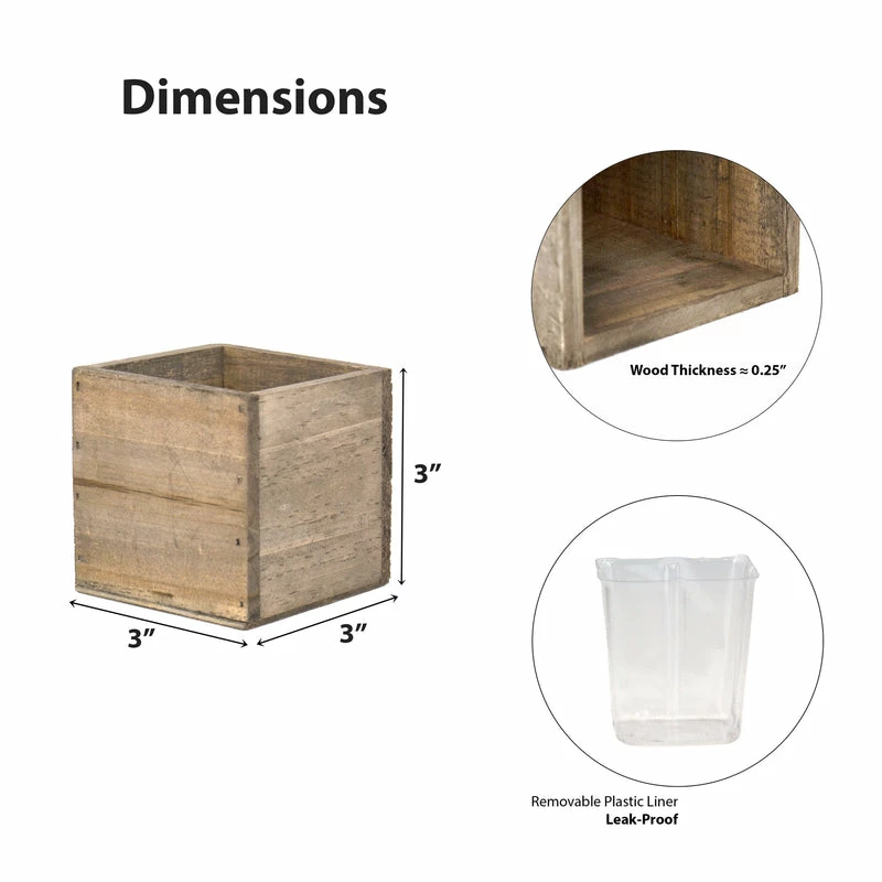 CYS Excel Natural Wood Planter Boxes are the perfect Indoor Planters. These wood boxes make excellent centerpieces for events to wow your guests. They are also commonly used as succulent planters and for rustic decor. They are equipped with a plastic liner to hold your arrangement together.