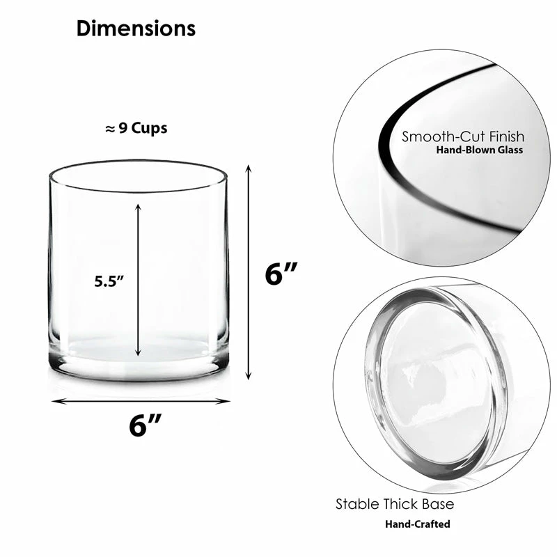 Glass Cylinder Vase. H-6″, Open D-6″ (Pack ofΒ 12 pcs)
