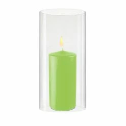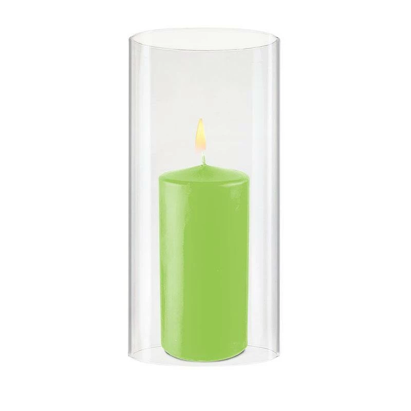 An open-ended candle holder for pillar candles or taper candles. This candle shield does not have a bottom. A contemporary design hurricane candle holder makes an impressive display in your home. Easy to place over lit candles. It allows a mess-free candle lighting experience. No more dripping wax onto the side of the glass. Bottomless cylindrical glass shield for open flame candles