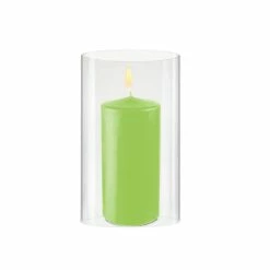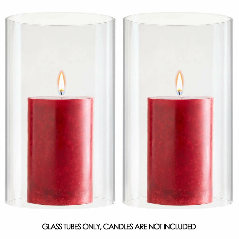An open-ended candle holder for pillar candles or taper candles. This candle shield does not have a bottom. A contemporary design hurricane candle holder makes an impressive display in your home. Easy to place over lit candles. It allows a mess-free candle lighting experience. No more dripping wax onto the side of the glass. Bottomless cylindrical glass shield for open flame candles