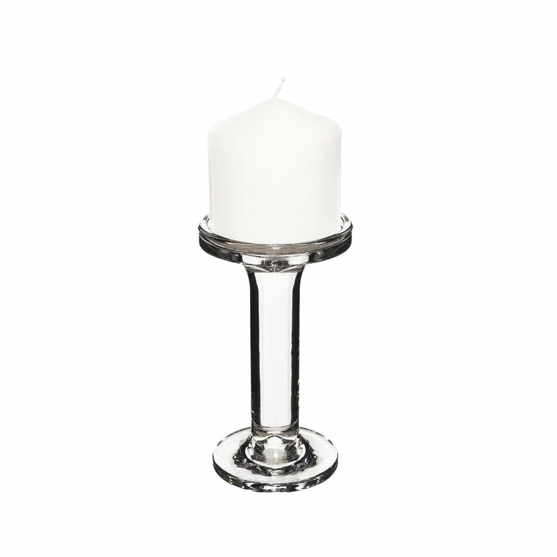 This clear glass pillar candle holder is perfect for displaying your pillar candle (D-3″ or smaller) and it’s ideal for both wick and LED candles. A dual-purpose candle holder can be used for pillar or taper candles. You will find a slight lip and an indented center for potential wax spillage. This piece is great for weddings, restaurants, and churches use.
