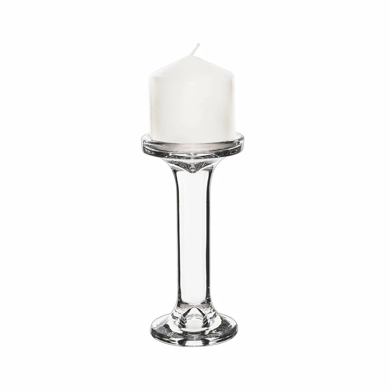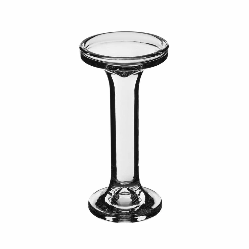 This clear glass pillar candle holder is perfect for displaying your pillar candle (D-3″ or smaller) and it’s ideal for both wick and LED candles. A dual-purpose candle holder can be used for pillar or taper candles. You will find a slight lip and an indented center for potential wax spillage. This piece is great for weddings, restaurants, and churches use.