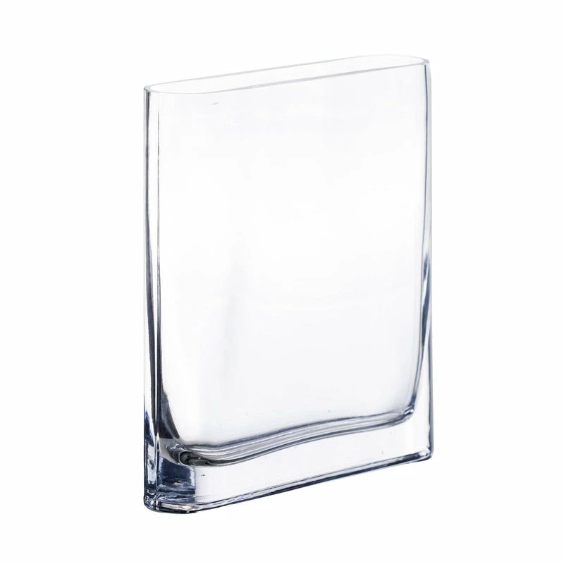 This vase design takes an elongated rectangular oval silhouette. These glass vases will complement an attractive array of short-stem fresh-cut flowers. Marbles, river rocks or other decorative vase fillers can be added to the arrangement to hold the flowers in place and to add variations to the design. These glass vases will bring a modern flair to your design.