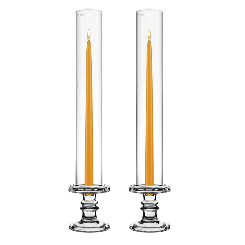 - Product: Taper Candle Holder & Clear Glass Open-Ended Hurricane Tube