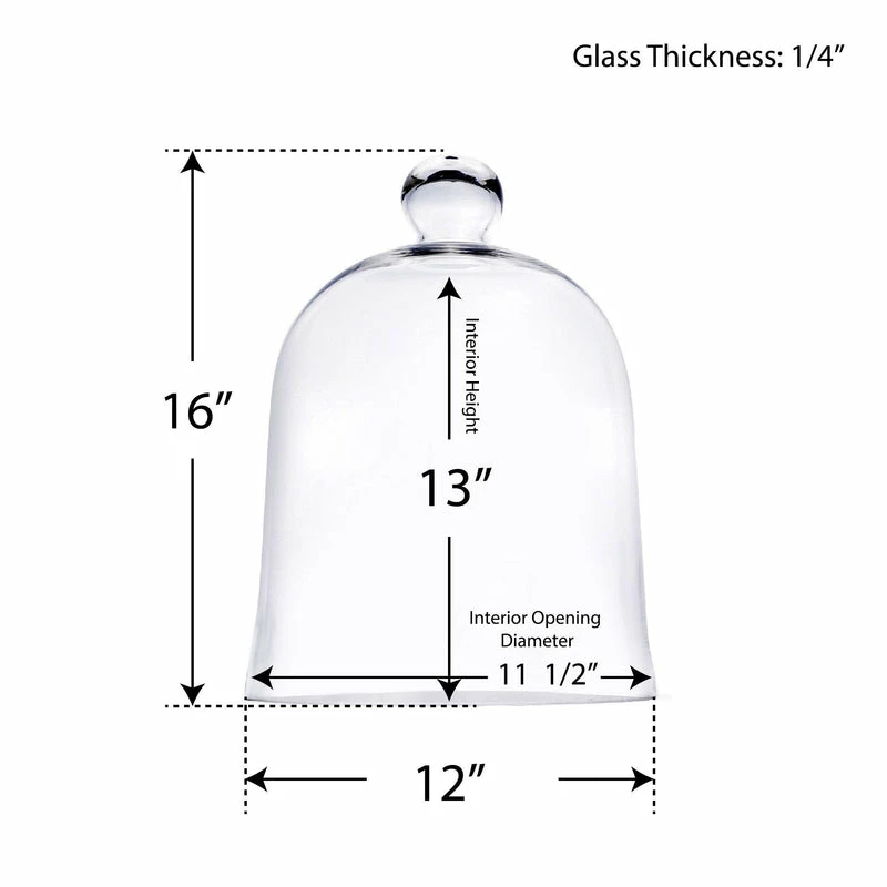 Glass Cloche Dome, Terrarium Cover. H-16″, Pack of 2 pcs