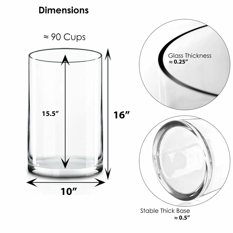 Glass Cylinder Vase. H-16″, D-10″, Pack of 2 pcs