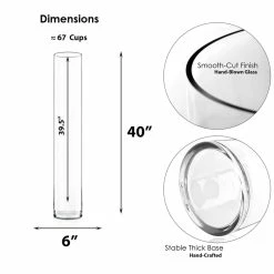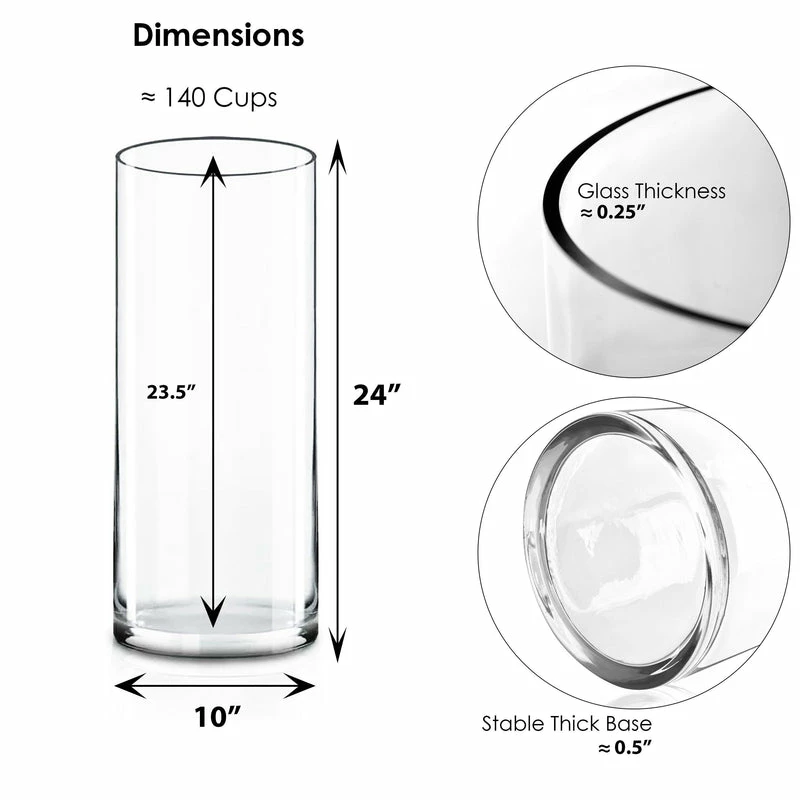 Wide OpeniGlass Cylinder Vase. H-24″, D-10″, Pack of 2 pcs