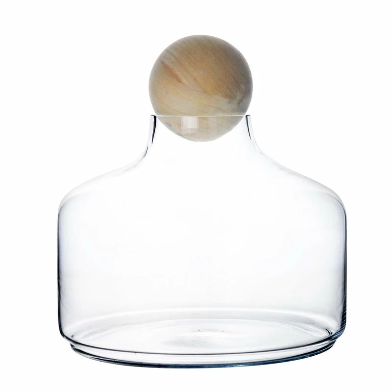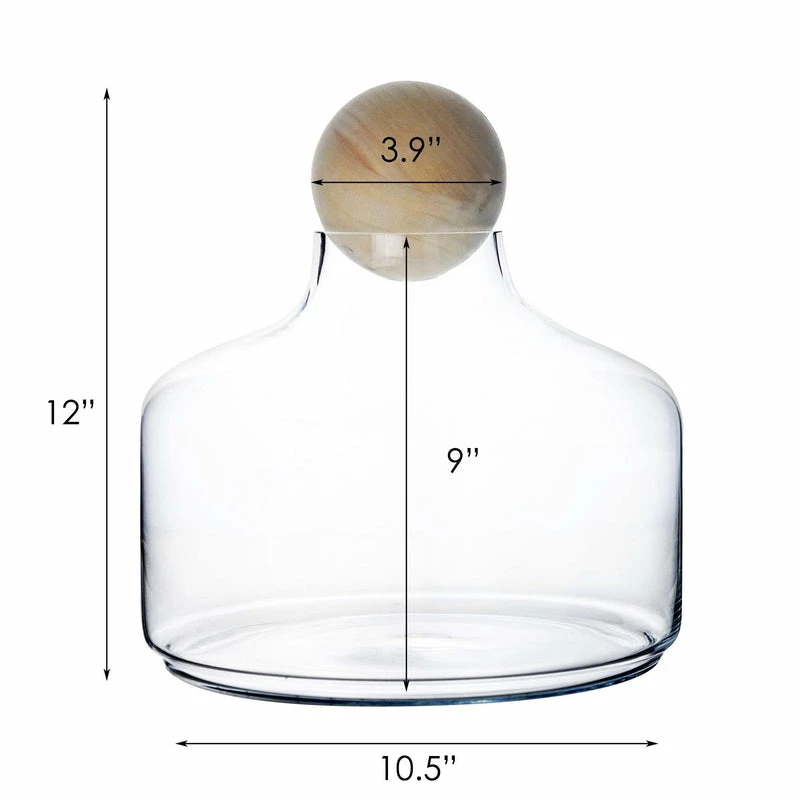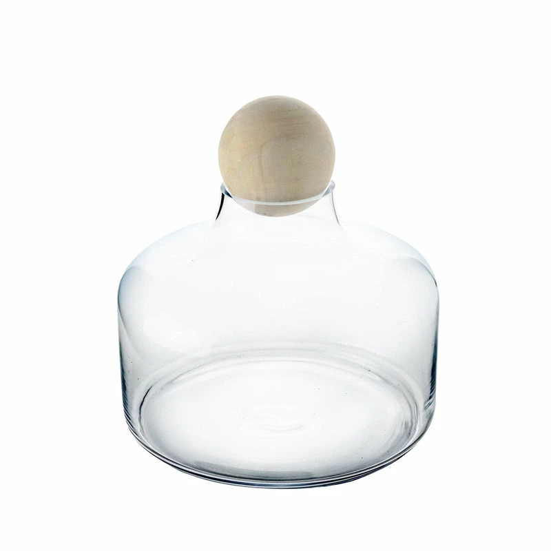 With no corners, the cloche dome has a unique feel of guarding everything that lies within its body. The transparent glass acts as a barrier to protect and display the beautiful world that lies withinβthe perfect storage unit for home decors to showcase the delicate unique masterpiece within. The Wooden ball above stops anything from going in or out of the dome.