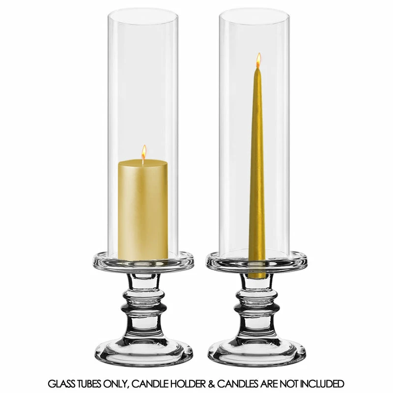 Bring great elegance to your decor. These glass candle sleeves are not only useful for covering an open flame but are also great in creating an elegant appearance to your decor. The crystal clear glass candle sleeve paired with a candle is the perfect combination of a great candle arrangement. Displaying your candle arrangement with these candle sleeves at your event will surely grab the attention of your guests. The modern simple shaped design is what makes these candle sleeves portray beauty and elegance in your decor.