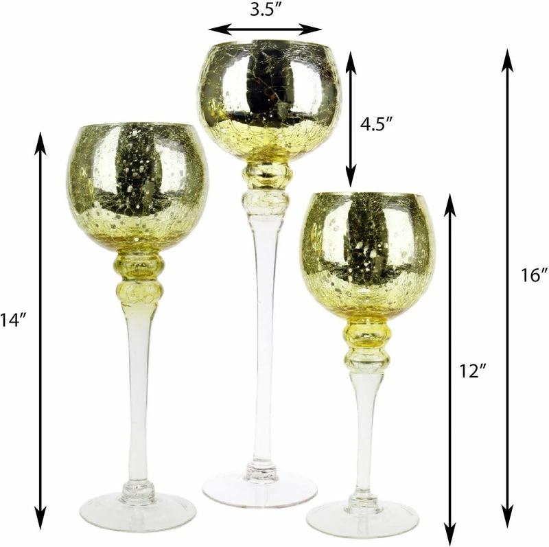 Mercuryย Gold Crackle Glass Candle Holder, Set of 3 (12″, 14″, 16″), Pack of 3 Sets