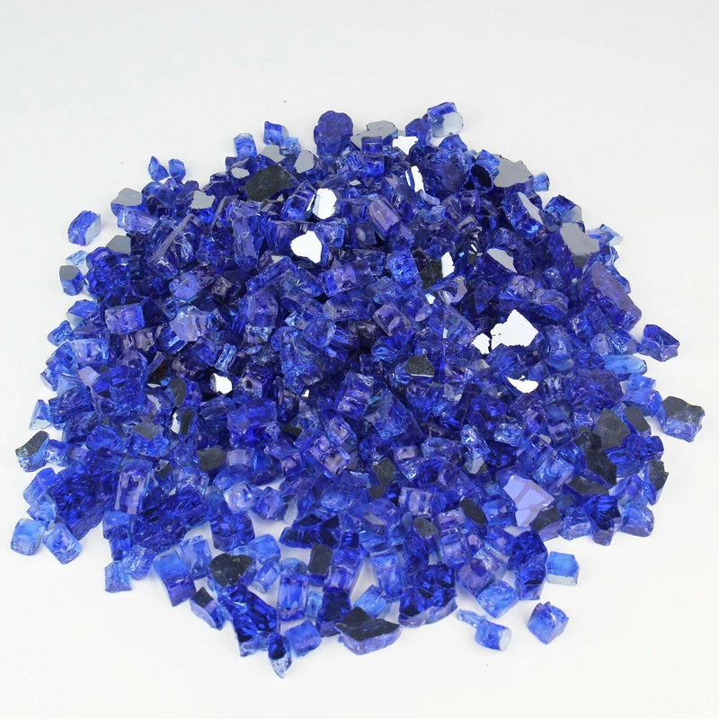 30 lbsΒ ReflectiveΒ Diamond Blue Tempered Fire Glass for Fire Pit & Fireplaces Indoor Outdoor Use Sparkling Look Eco-Friendly Non-Toxic