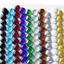 Glass Gem Flat Marbles, also known as fire stones.The secret to great flower arranging. Add these reusable clear glass gemstones to your floral displays while holding stems in place. These round glass gems have a flat bottom with a rounded top, like fallen raindrops. They are oval in shape and light will shine through them. Gemstones are very popular as vase fillers but also they are a great tool to spark up creativity in a type of decor.
