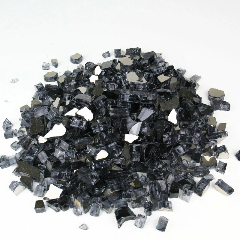 30 lbsΒ Reflective Dark Gray Tempered Fire Glass for Fire Pit & Fireplaces Indoor Outdoor Use Sparkling Look Eco-Friendly Non-Toxic