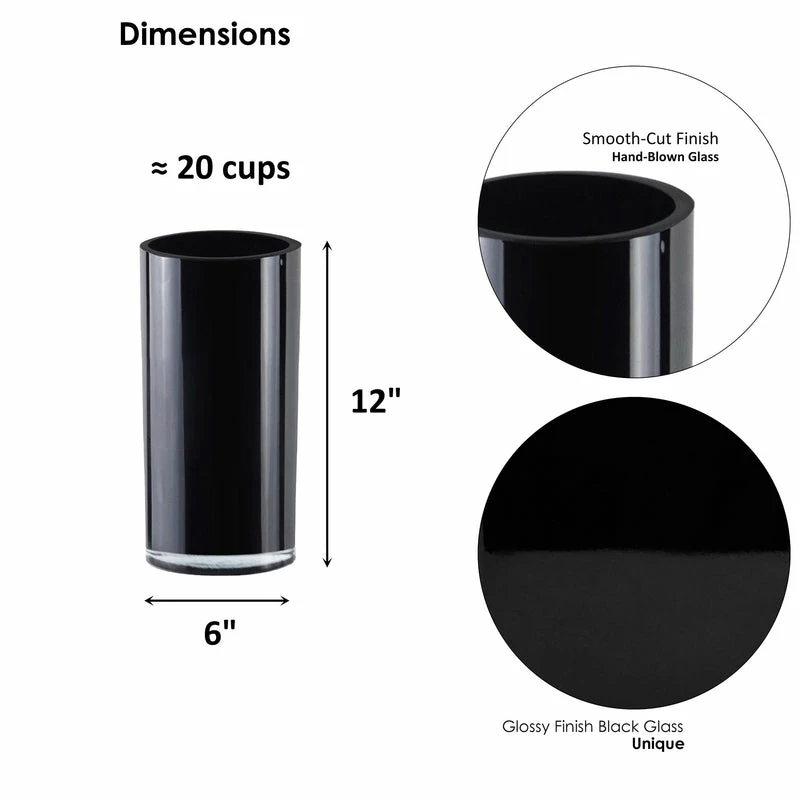 Glass Black Cylinder Vase. H-12″, Open D-6″, Pack of 4 pcs