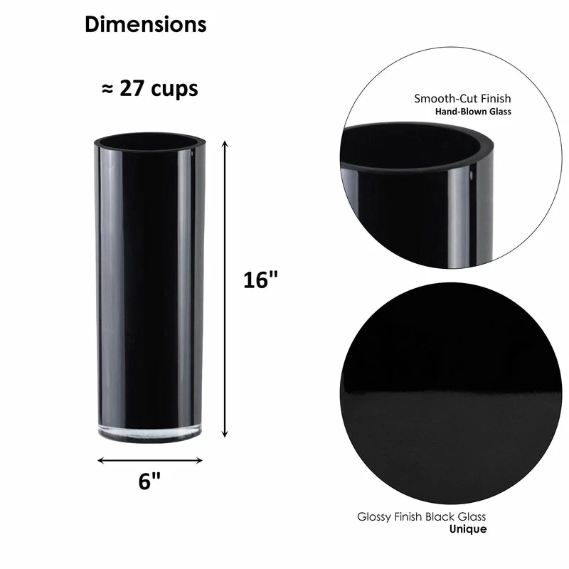Glass Black Cylinder Vase. H-16″, Open D-6″, Pack of 4 pcs