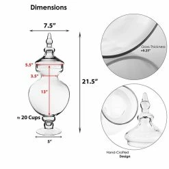 Do not let the circular body fool you. These jars can hold a significant amount of candy inside with a lid that fits perfectly on top and a simple yet artistic knob. It is perfect for keeping items inside safe and provides easy access for those needing to obtain the things inside. Regardless if you are choosing those with a long or without a long stem. They will add a modern yet elegant feel to the event.