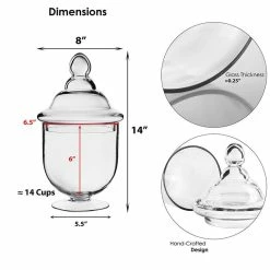 Event planners love to use these to store food for people. Not only are they able to hold a large amount of food, but the lids can keep the food warm while denying any dust or critters that might be interested in the food within. The unique design on these jars will attract many that catches sight of it. Made with transparent glass material, it displays all the beautiful items within. As if it’s asking you to put your hand inside to grab hold of all the treasures inside.