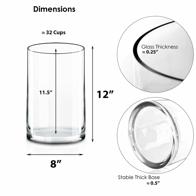 12″ Large Clear Glass Cylinder Vase Wedding Centerpiece 8″ Wide Glass DΓ©cor