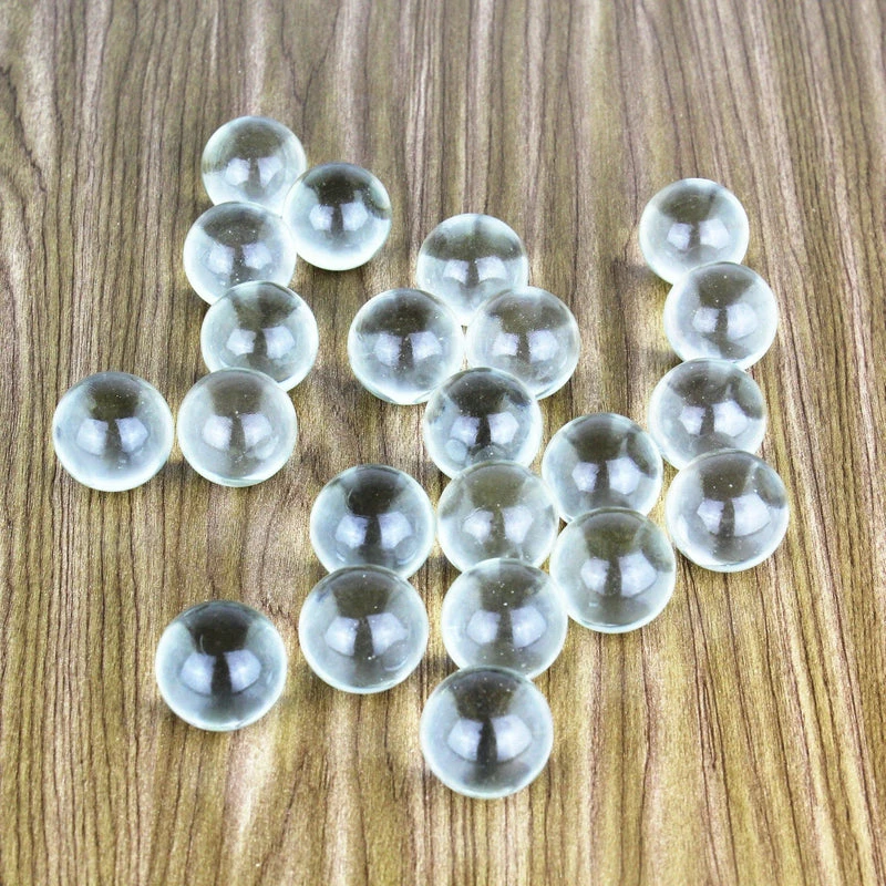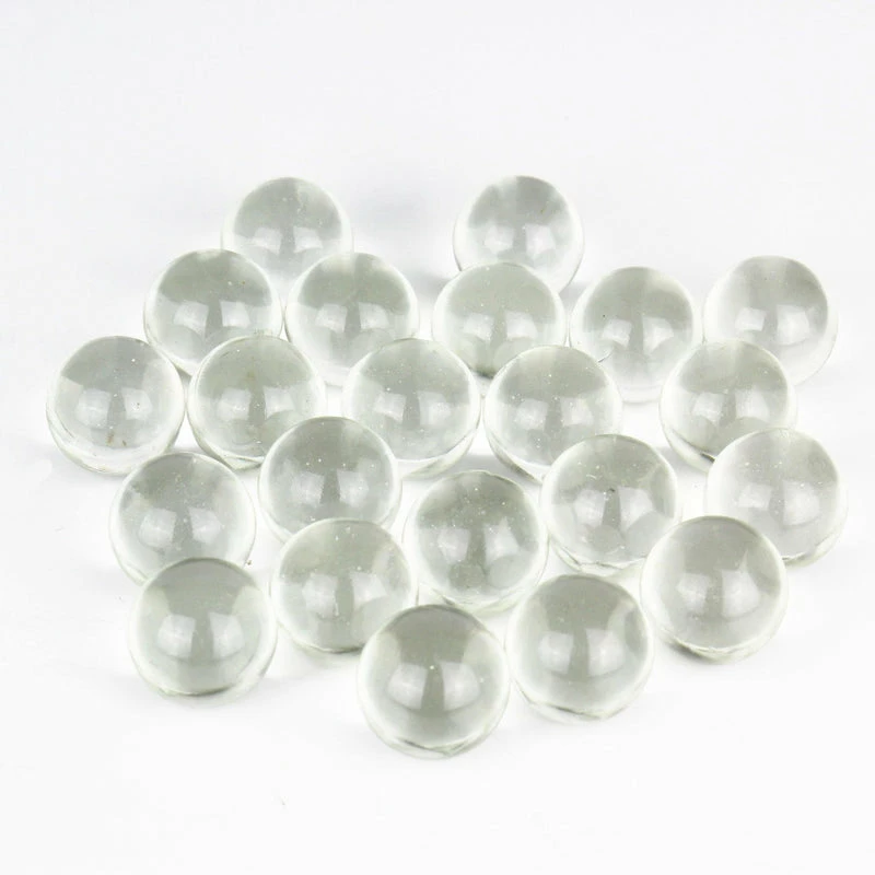 Glass Gem Flat Marbles, also known as gemstones are the secret to great flower arranging. Add these reusable clear glass gemstones to your floral displays while holding stems in place. These round glass gems have a flat bottom with a rounded top, like fallen raindrops. They are oval in shape and light will shine through them. Gemstones are very popular as vase fillers but also they are a great tool to spark up creativity in a type of decor.