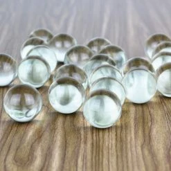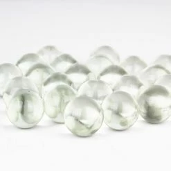 These simple and rounded glass gemstones are perfectly rounded, resembling water droplets or raindrops. They are round-shaped and completely transparent. Each bag is one pound and contains approximately 25 pieces.