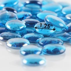 Glass Gem Flat Marbles, also known as fire stones.The secret to great flower arranging. Add these reusable clear glass gemstones to your floral displays while holding stems in place. These round glass gems have a flat bottom with a rounded top, like fallen raindrops. They are oval in shape and light will shine through them. Gemstones are very popular as vase fillers but also they are a great tool to spark up creativity in a type of decor.