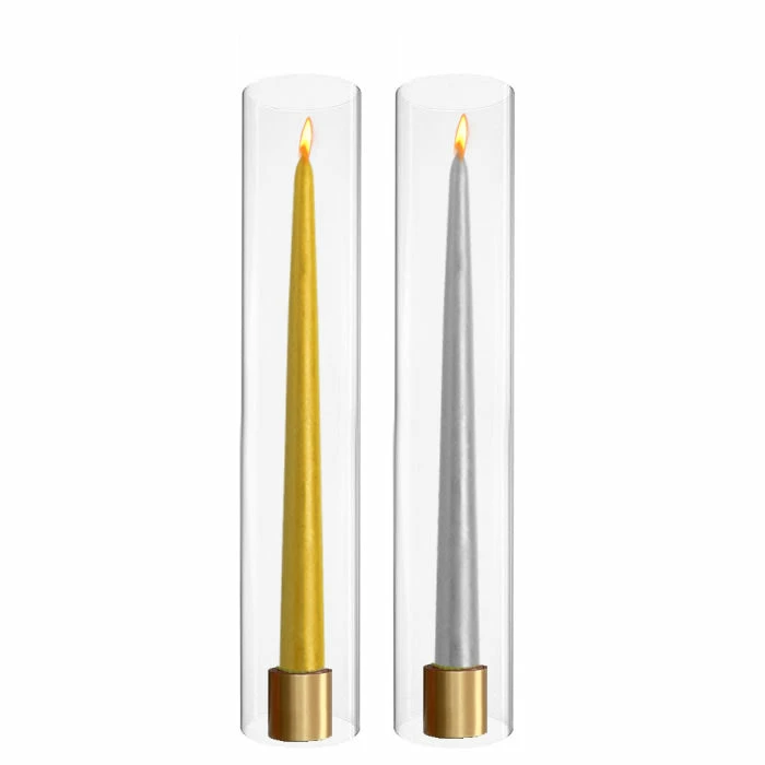 An open-ended candle holder for pillar candles or taper candles. This candle shield does not have a bottom. A contemporary design hurricane candle holder makes an impressive display in your home. Easy to place over lit candles. It allows a mess-free candle lighting experience. No more dripping wax onto the side of the glass. Bottomless cylindrical glass shield for open flame candles