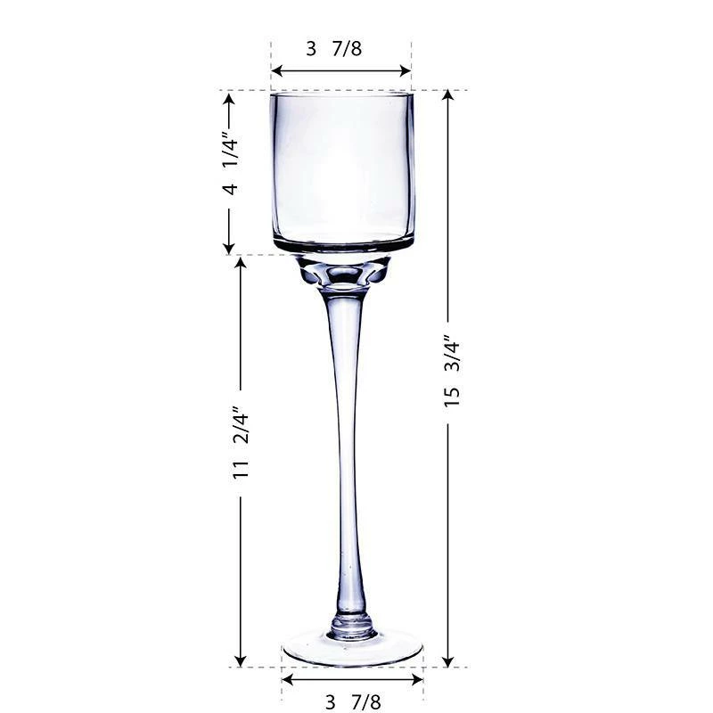 Long-stem candleholders are an elegant choice for scattering candlelight at any event and occasion! Our high-end straight candle holders are the perfect size for holding pillar candles. The simple, clear design allows the candlelight to take center stage and set a romantic, warm ambiance. Get a couple of the stemmed candle holders and put them together, it makes a dramatic statement at weddings, banquets, parties, and other gatherings. A must-have piece for the brides, event planners, caterers, restaurants, and bars.