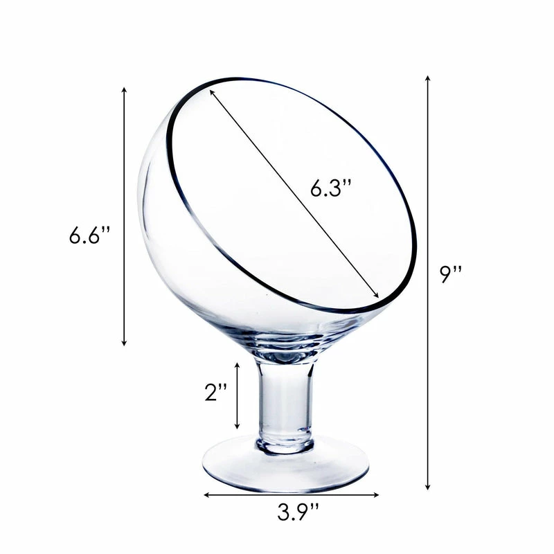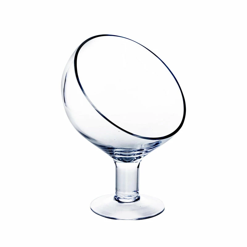 This cheery little Slant Cut Bowl with Stem is a captivating hand-crafted accent, perfect for displaying a variety of small objects. There are so many possibilities! Create a mini succulent or air plant terrarium, a floral centerpiece, or display small desserts and pastries. You can also use these baby terrariums as placeholders or for aesthetic displays of name cards or number cards at special events.ย This is a simple yet very elegant plant terrarium container.ย