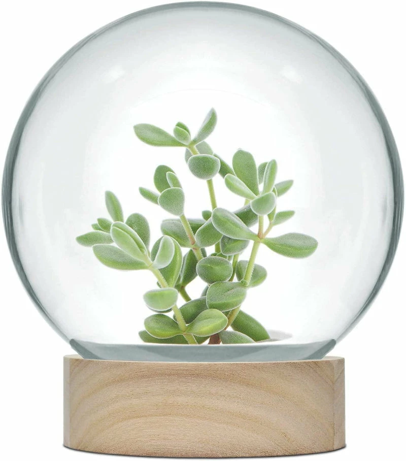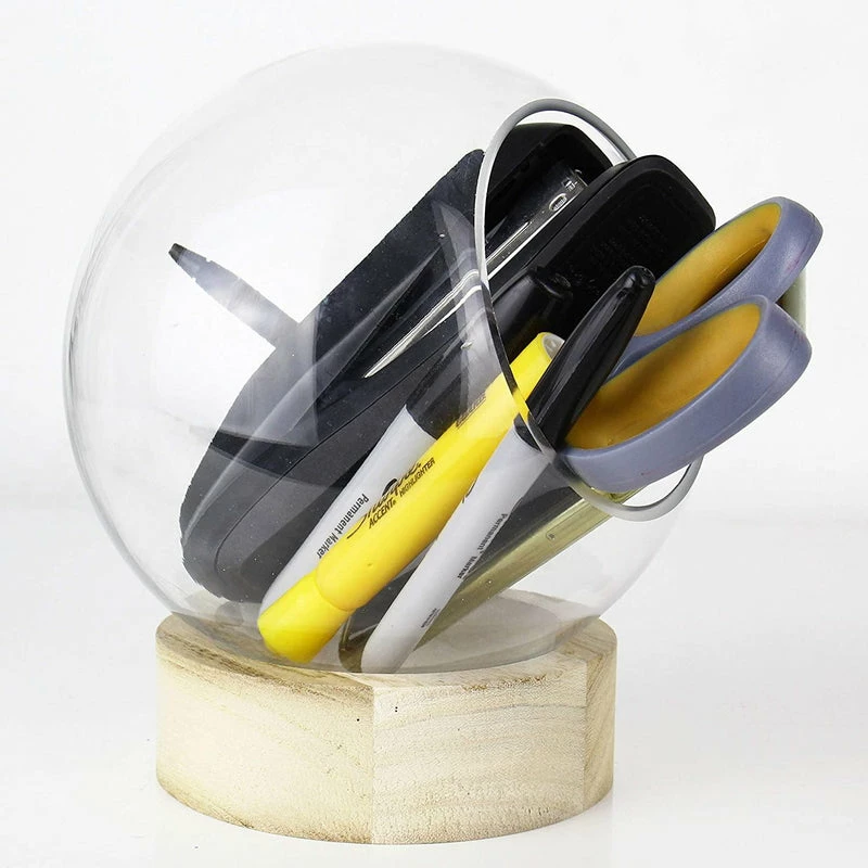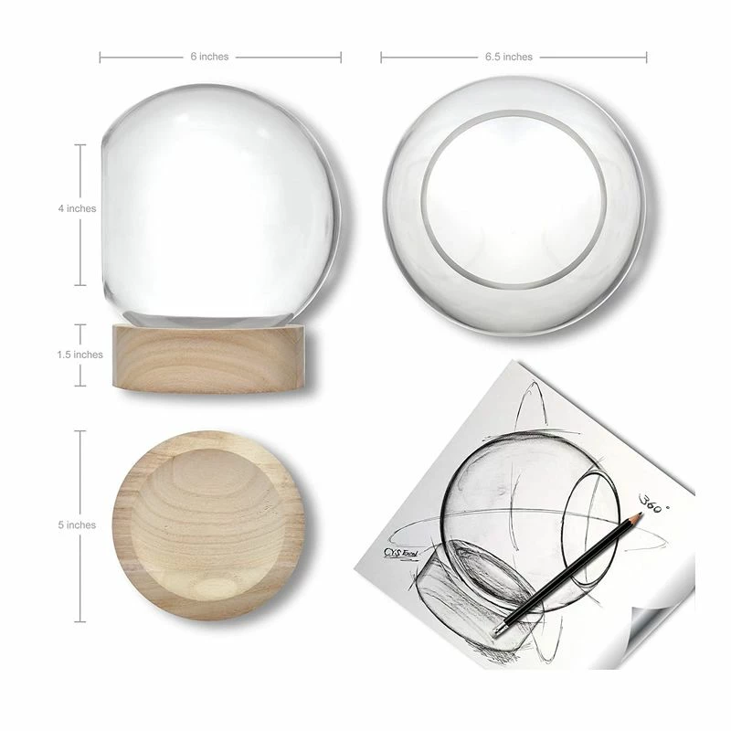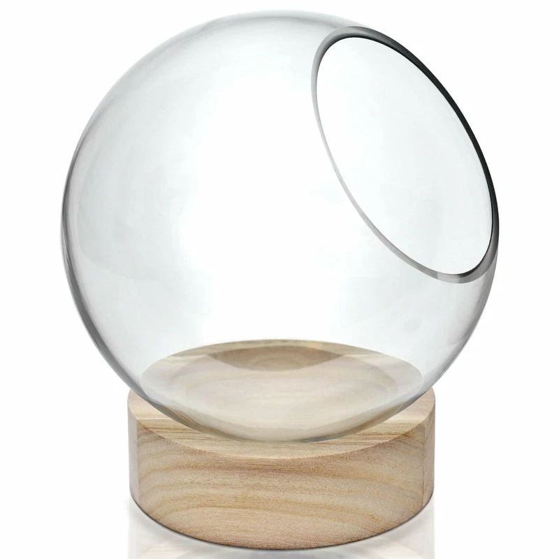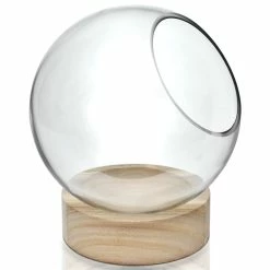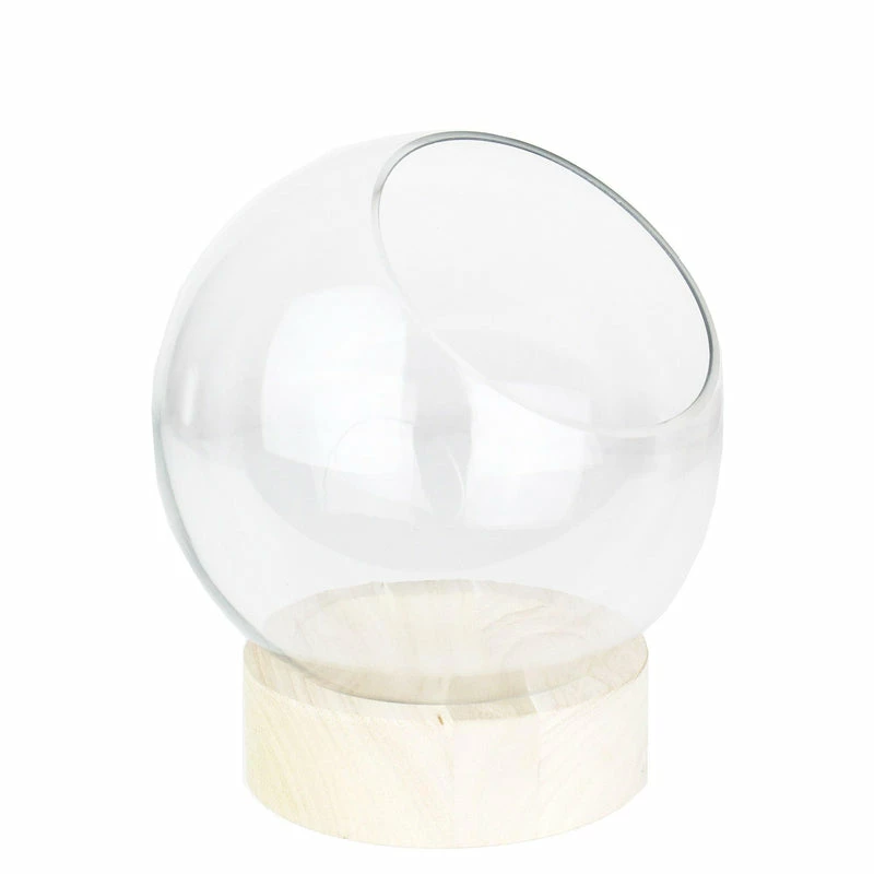 Glass Slant Cut Bubble Bowl With Wood Base H-8.5β