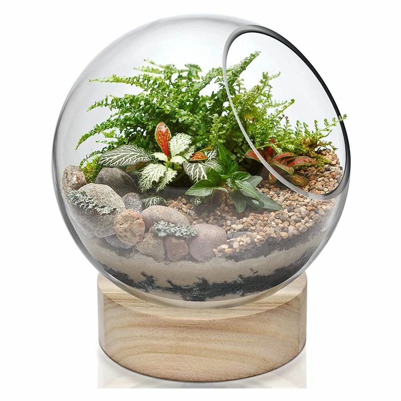 Glass Slant Cut Bowl The unique shape of this vase can create many other uses for the vessel. With the proper aquatic plants, rock, and small fish, it can be an outstanding display decor. Or it can even be created into the perfect terrarium. Showing how artistic one can be with the display of a small garden within a world of its own.