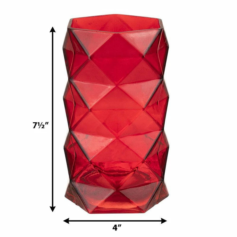 Redย Geometric Glass Vases, Candle Holder. H-7.5″, Pack of 6 pcs